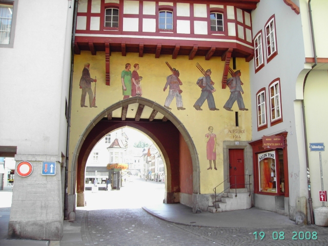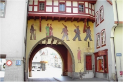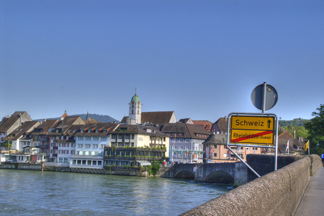 ![]() | In Karsau begann unsere Tour und bot mit der Überquerung des Rheins bei Rheinfelden bereits ein optisches Highlight. Die Altstadt Rheinfeldens (Schweiz) ist auch einen extra Besuch wert. Unser Bild links zeigt den Blick von der Rheinbrücke, rechts die Altstadt. | ![]() |